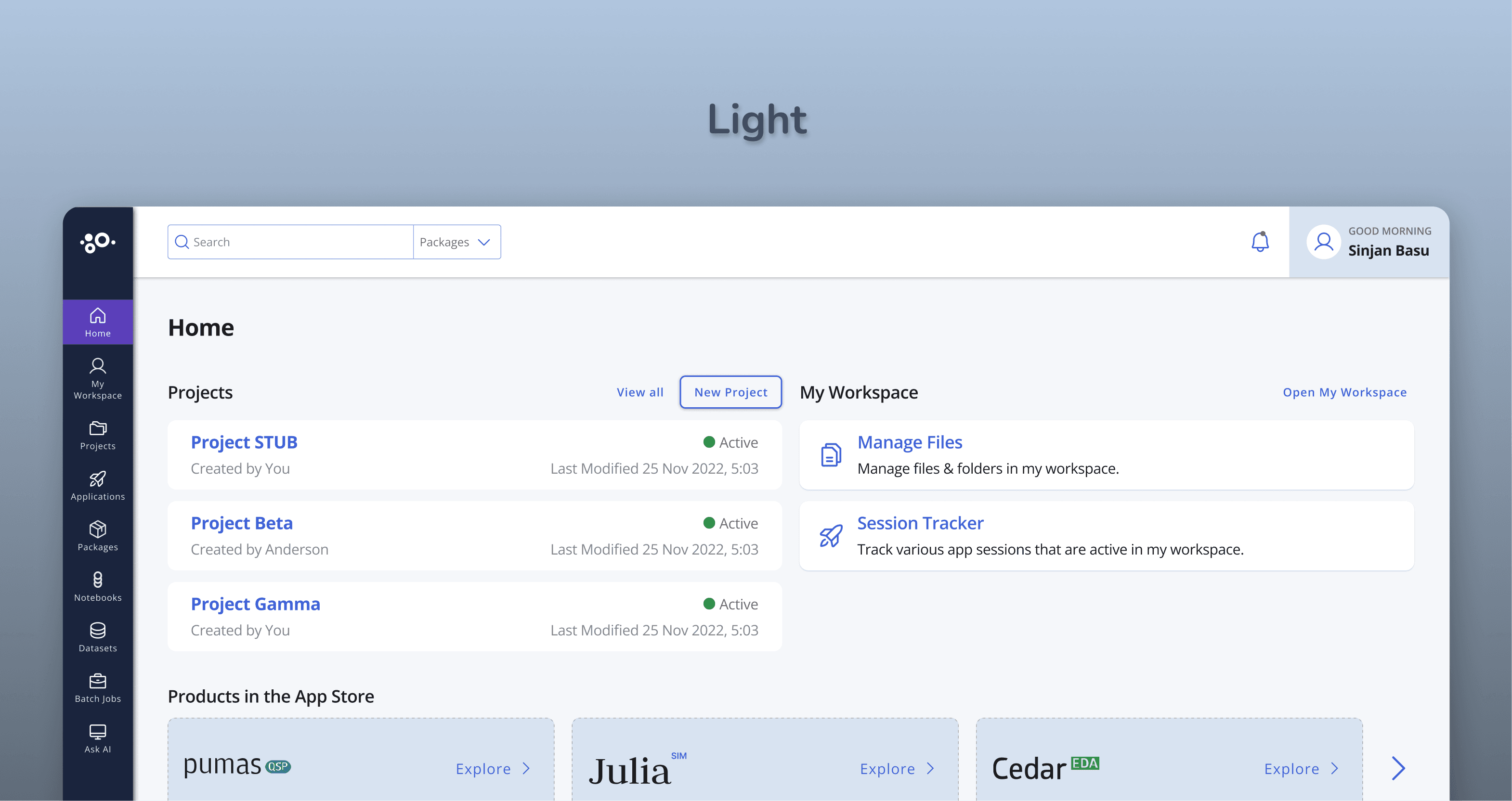 New Sidebar Navigation: Workspaces, Projects, and Compute Resources as primary categories.