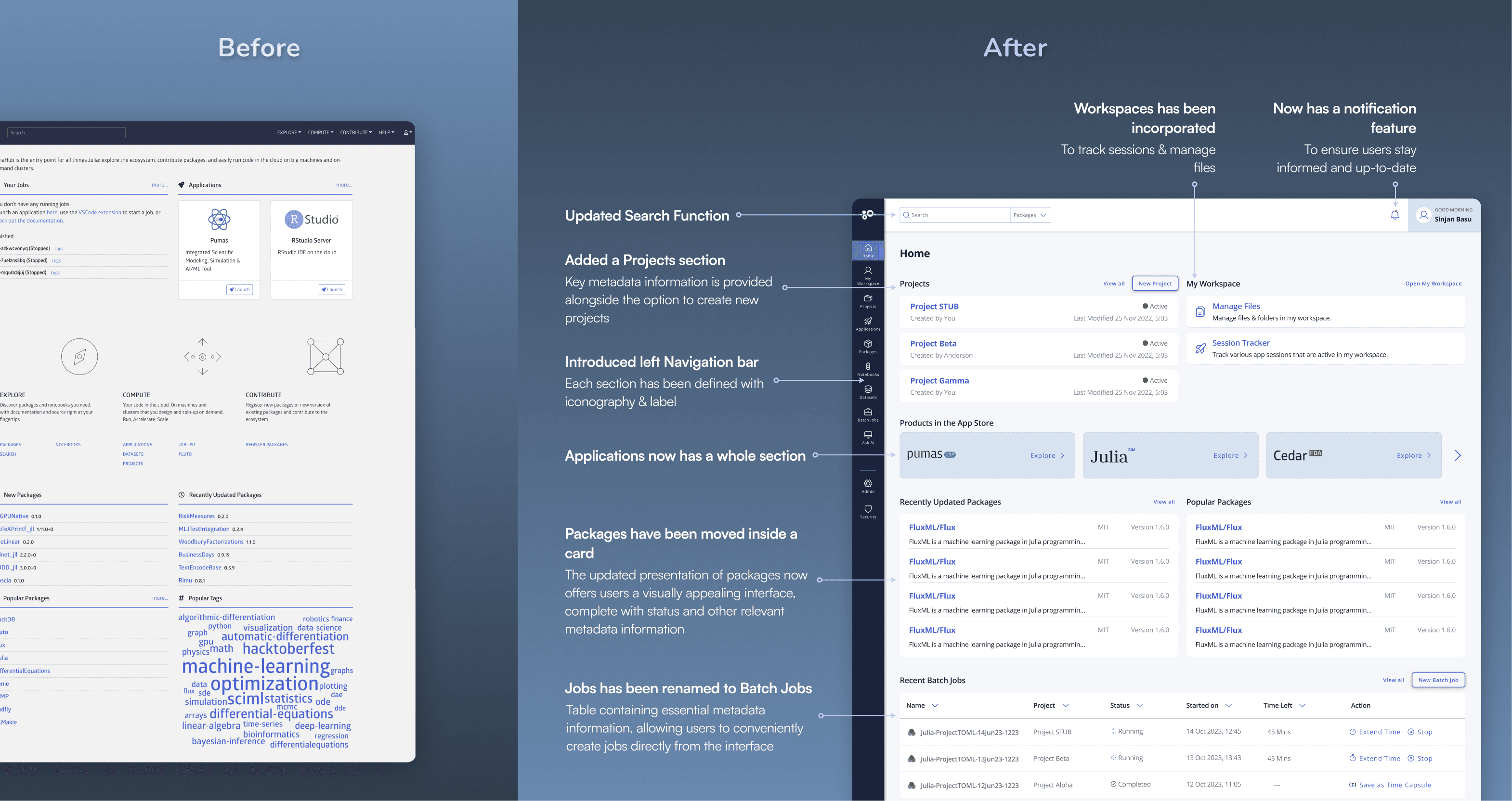 By focusing on user needs and employing a rigorous design process, the Julia Hub redesign successfully transformed a powerful but complex platform into an accessible and empowering tool for scientific discovery. This project demonstrates my commitment to creating user-centered solutions that drive tangible results.